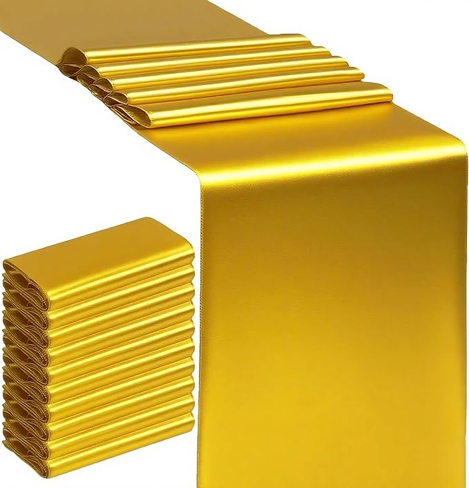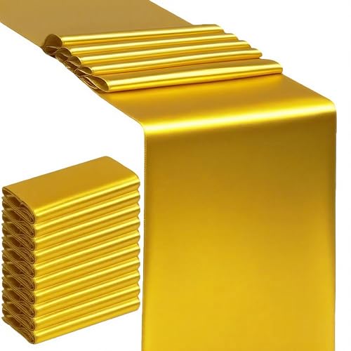 SINSSOWL 10 Pack Gold Table Runners 12 X 108 Inches Wedding Golden Satin Table Runner for Party Birthday Banquet Bridal Sh...