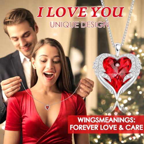 - 🌹【Angel Wing Love Heart Necklaces】: This angel wing love necklace features a classic angel wing shape with sparkling heart stones and angel wings to symbolise love and protection, and is radiant enough to catch everyone's eye when worn.The chain length is 15.7in+ 2in(Adjustable), works on practically anyone.