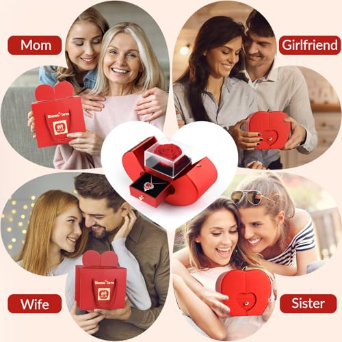 - 🌹【Unique Design】Our box is designed in the shape of an apple and The gift box within a rose.a Heart necklace in hidden inside bottom of the box. The heart necklace with the words "I love you always and forever" symbolizes your forever love, and the preserved red roses means eternal love for the special women in your life.