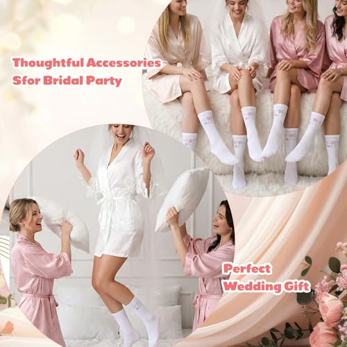 Tucnoeu 2 Pairs Bridesmaid Gifts, White Brides Maid Socks, Embroidered Socks for Women, Soft Cotton Bridal Sock