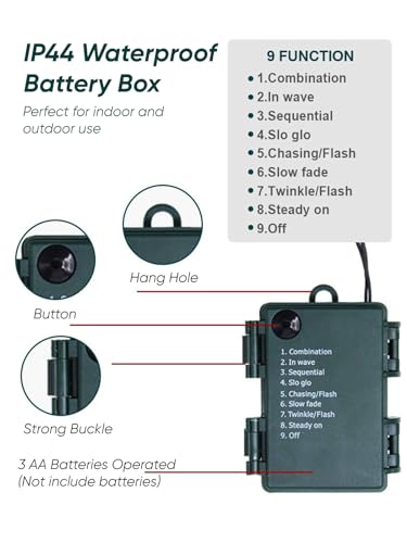 - Outdoor Use: Battery box and string lights are waterproof, these are perfect to use on indoor and outdoor. Easy and great decor for Christmas tree, outdoor trees, wreaths and garland.