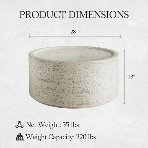 - 【Perfect Size for Everyday】 Measuring 28×28×13 inches, the wide tabletop provides 4.3 sq ft of usable surface area, ideal for coffee, drinks, books, décor, or entertaining guests. This round coffee table works perfectly in front of sofas, sectionals, or outdoor seating sets, meeting the preference for wide, low-profile coffee tables that feel substantial and functional.