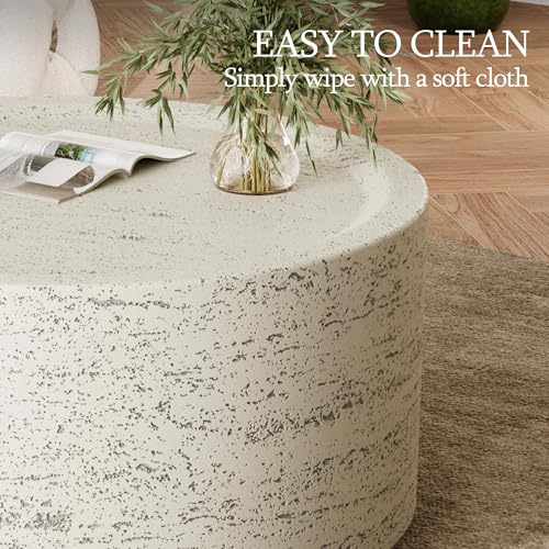- 【Modern Coffee Table】 Sleek round shape with a natural concrete texture delivers a clean, modern look for both indoor and outdoor spaces. Perfect as a round coffee table, accent table, or center table for living rooms, patios, balconies, and covered outdoor areas