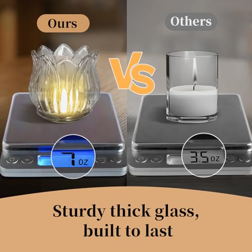 - 🔥 Durable Crystal Glass: Each tealight candle holder is made from thick crystal glass, weighing 7 ounces for a substantial feel that distinguishes them from lighter, more fragile options. This sturdy design ensures durability and heat resistance, ideal for everyday use or special occasions.