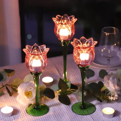 - [Elegant Candle Sticks Holder Decor]: the tulips glass votive candle holder itself is accent room decor pop with color and contrast, really go with vintage Victorian, modern or cottage-core decor style, ready for more themed party/events
