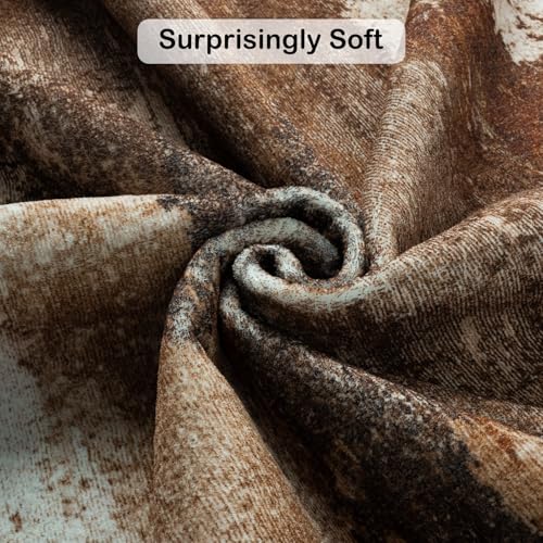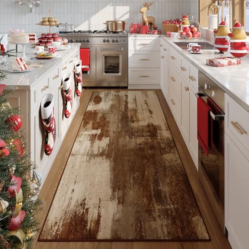 Washable Runner Rug, 2x6 Kitchen Rugs Brown Long Runner Rugs with Rubber Backing, Abstract Non-Slip Carpet Runners for Hal...