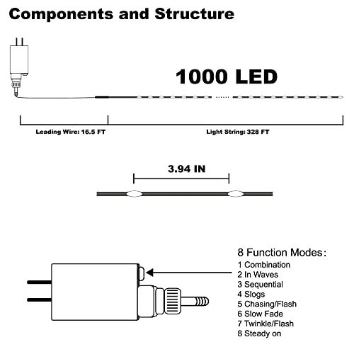 - Christmas Lights: Decorate with our extra long 1000 LED Christmas multicolor fairy string lights with PVC wire, creates a warm festive atmosphere. Total length (include leading line 16.5ft): 344.5ft