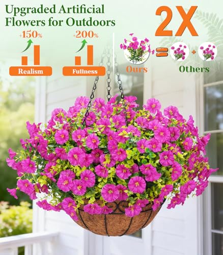 - [Full & Vibrant Color] Our artificial hanging flowers for outdoors unite in a lush beauty. Realistic flowers and clear texture leaves create colorful look, add the finishing touch to your decor.