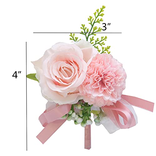 YESKY Wrist Corsage and Boutonniere Set for Bride Groom Bridesmaids Groomsmen Wedding Homecoming Flowers Prom Suit Accesso...
