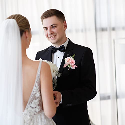 Wrist Corsage and Boutonniere Set for Bride Groom Bridesmaids Groomsmen Wedding Homecoming Flowers Prom Suit Accessories, Rose Boutonniere and Corsage Wristlet Flower