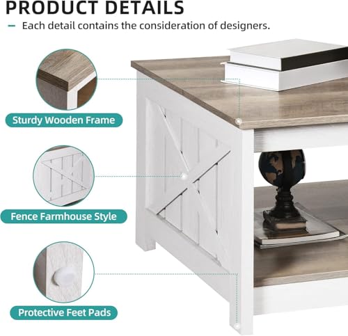 - MODERN & FARM STYLE- Our coffee table combines the natural grey wash with grayish-white; the minimalist design also adds unique rustic aesthetic to your room; square coffee table can complement any modern or rustic rooms, highlighting your personal taste and ideals