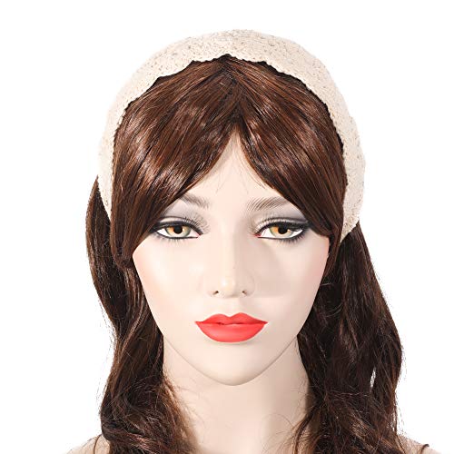 ZLYC Women Floral Headband Handmade Crochet Knit Vintage Hair Bands (Plain Ivory White)